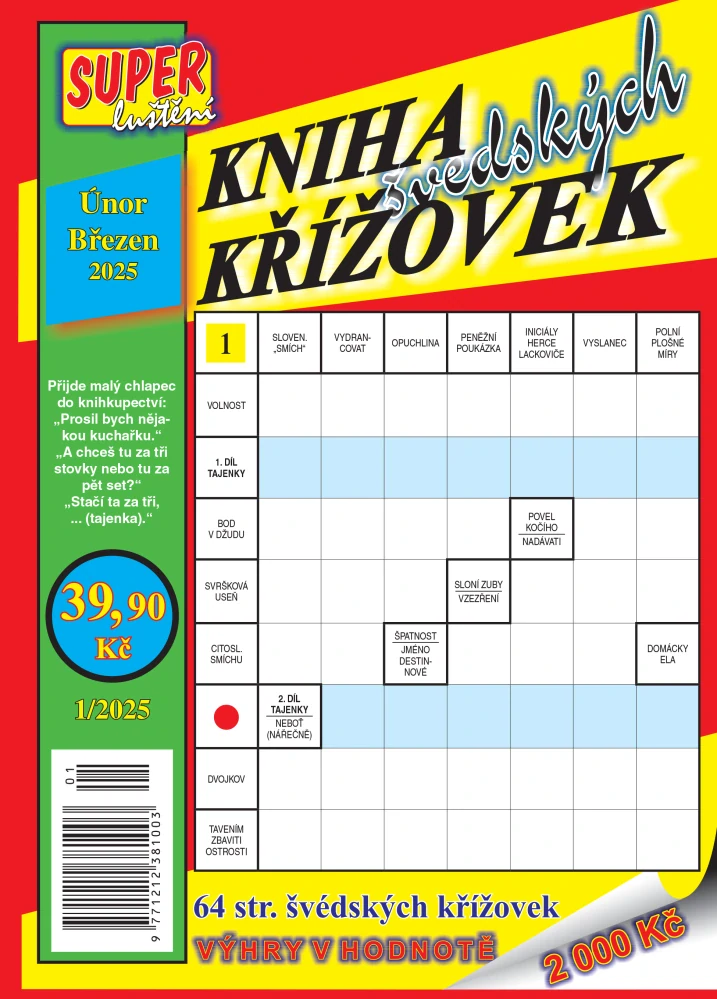 V tomto soutěžním časopise naleznete 64 stran oblíbených švédských křížovek, které jsou tištěny na novinovém papíře, takže ho hravě můžete sbalit s sebou a zkrátit si chvíle třeba při cestování. Navíc je tento časopis výherní, soutěžit můžete o výhry v hodnotě 2000 Kč. Stačí jen vyplnit správná řešení tajenek do soutěžního kuponu, který naleznete na předposlední straně časopisu a odeslat na adresu redakce nebo řešení zaslat přes soutěžní kupón na webových stránkách. V tomto titulu také naleznete kupon k celoroční soutěži. Více o Celoroční soutěži najdete zde >>>